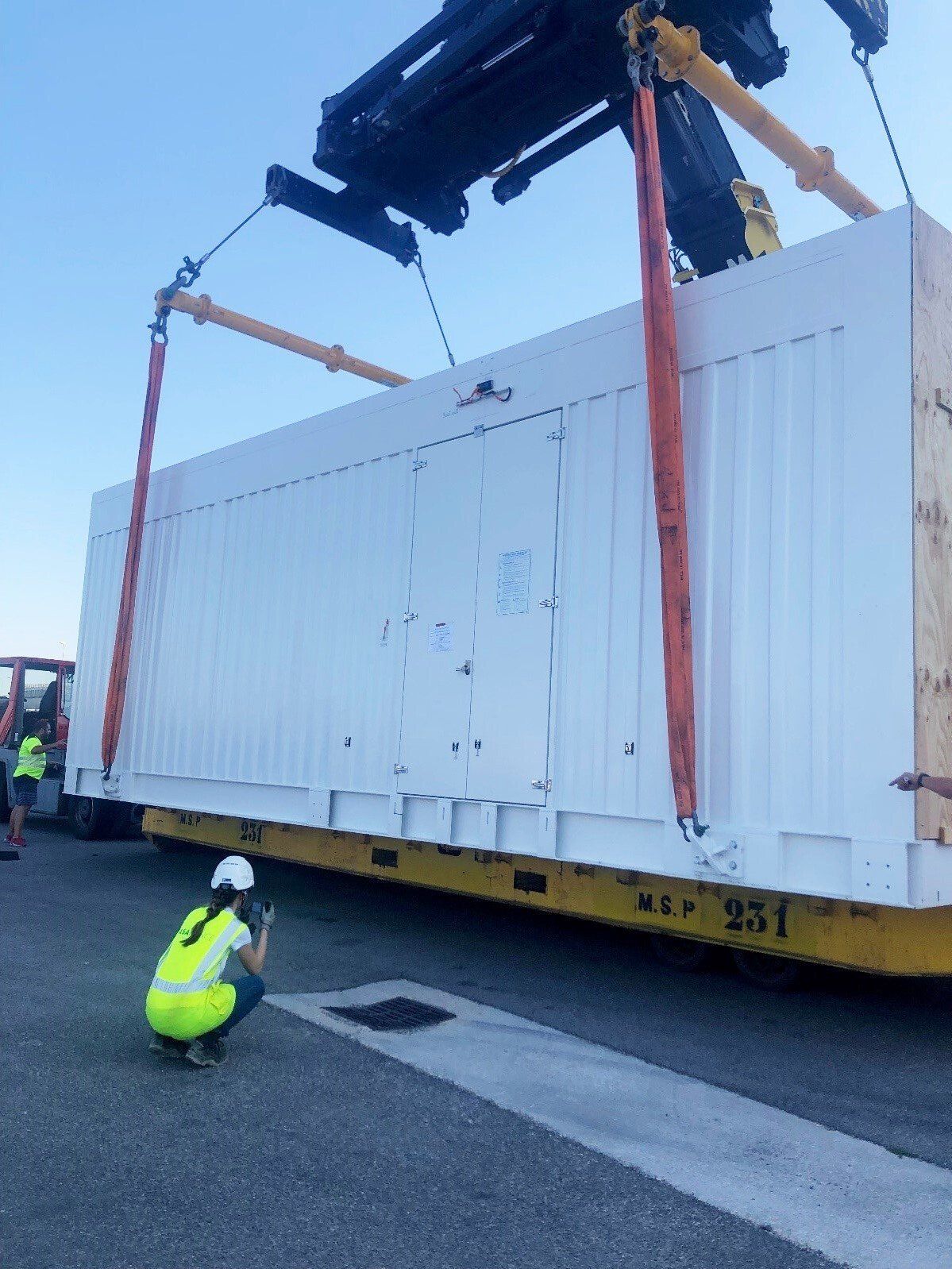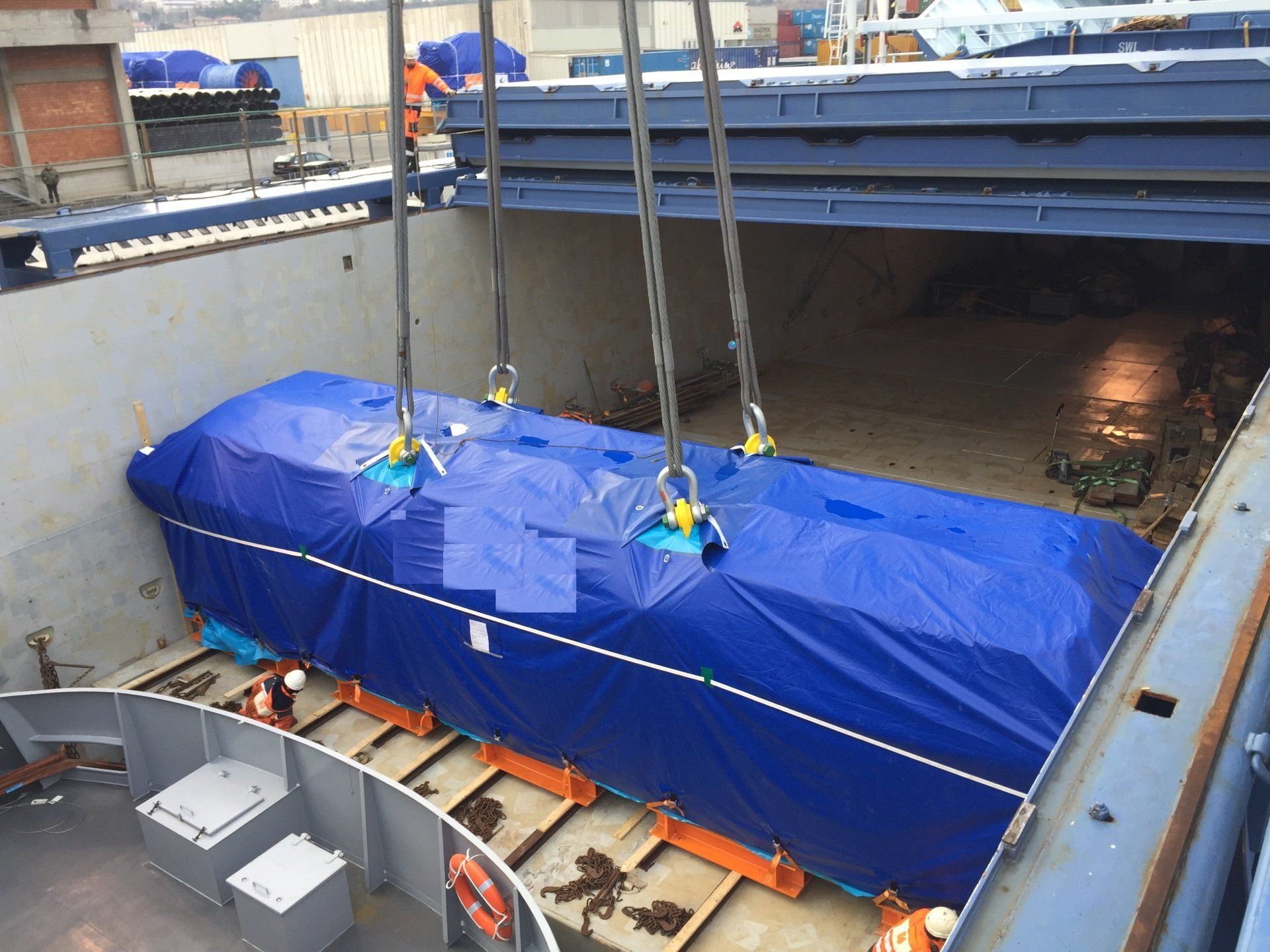 Including 2 transformers: 9.67 x 4.04 x 4.45 m / 130 tons each (on foundation with jacking system)
