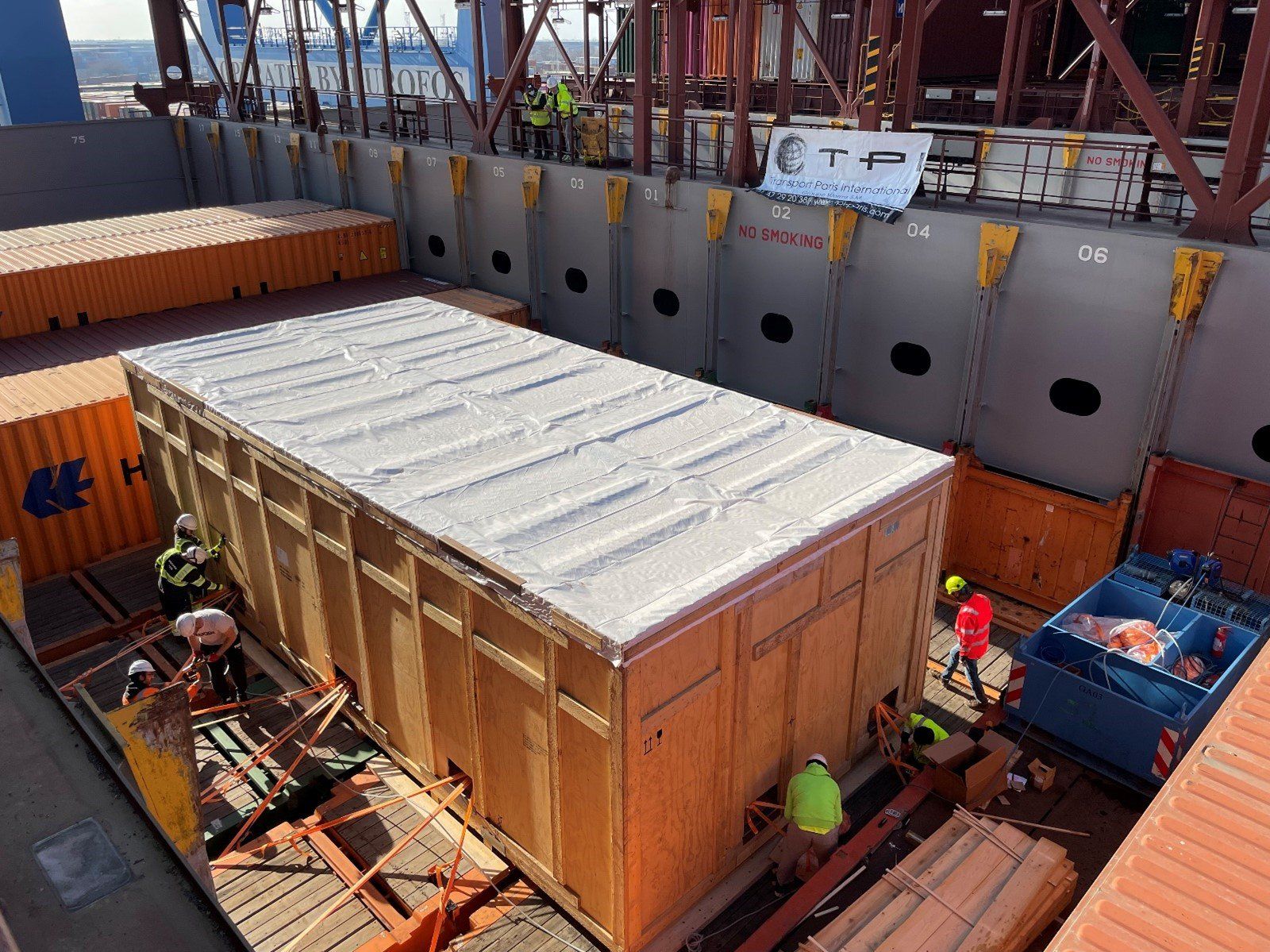 Prestation incluant le déballage des colis et l'assistance au montage Machine avec portique hydraulique colis lourds et grue mobiles